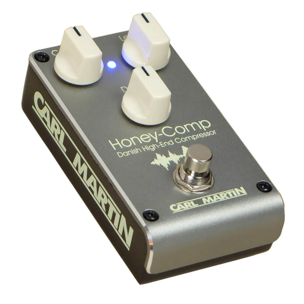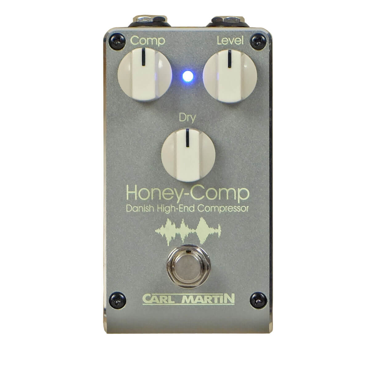 The Carl Martin Honey Comp incorporates the special CM developed DC/DC converter circuitry. This enables us to run the pedal with +-12V internally, which is necessary, in order to maintain the same sonic quality and headroom as on the “old” Compressor/Limiter, using a regular 9V DC 200mA external power supply.