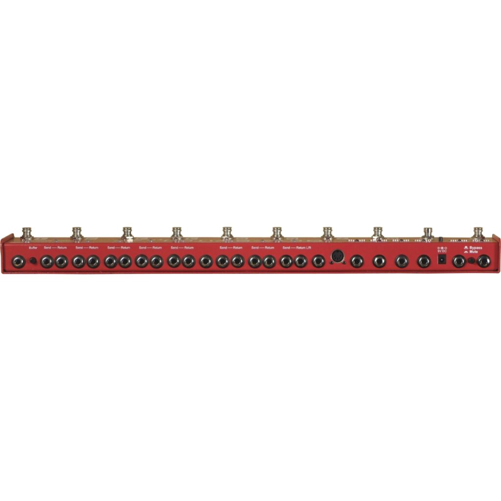 - Eight true-bypass relay loops with impedance-free gold relays, ensuring complete tone transparency and compatibility with any pedals, vintage or modern.