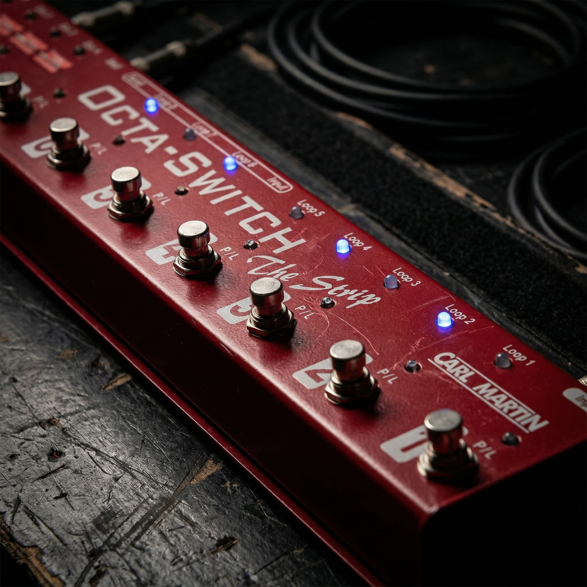 The Octa-Switch The Strip is a programmable, stage-friendly loop switcher built to simplify complex pedalboards without compromising tone. You get 8 true-bypass loops and 8 preset switches (“banks”) so you can recall complete pedal combinations with a single press—no tap dancing. It’s designed to be fast, intuitive, and rugged, with a “what you see is what you get” approach that keeps things practical for real-world gigging.